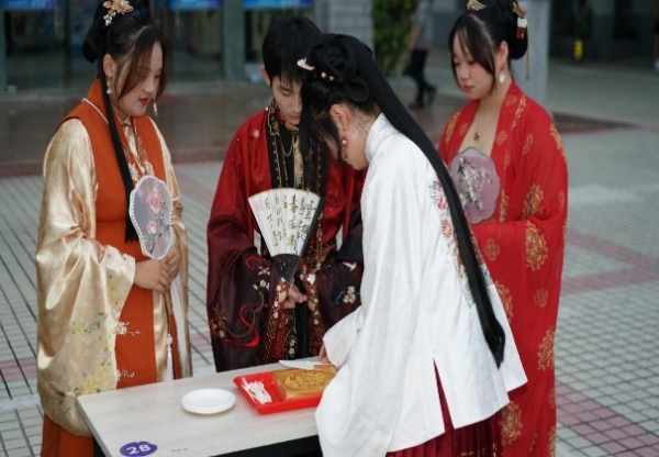 中秋拜月,源自古人对月神的祭祀,也是我们中华民族的传统习俗。随后,汉服社的同学们举行了中秋拜月仪式,向月宫祈望suncitygroup太阳集团的师生们平安喜乐,顺遂无忧。