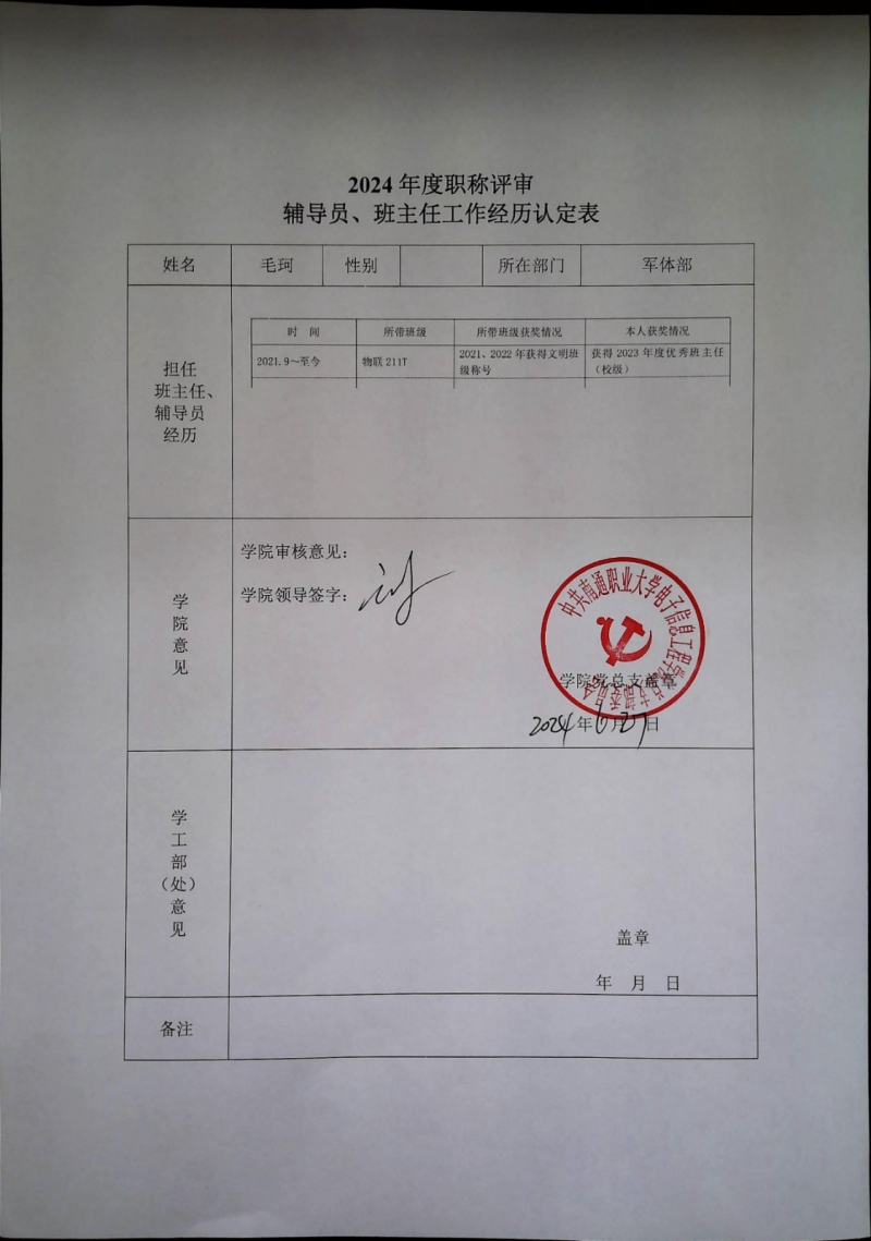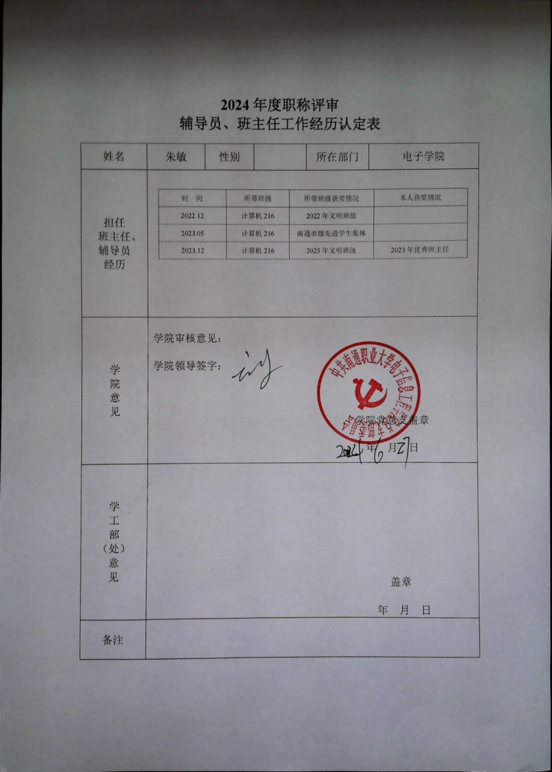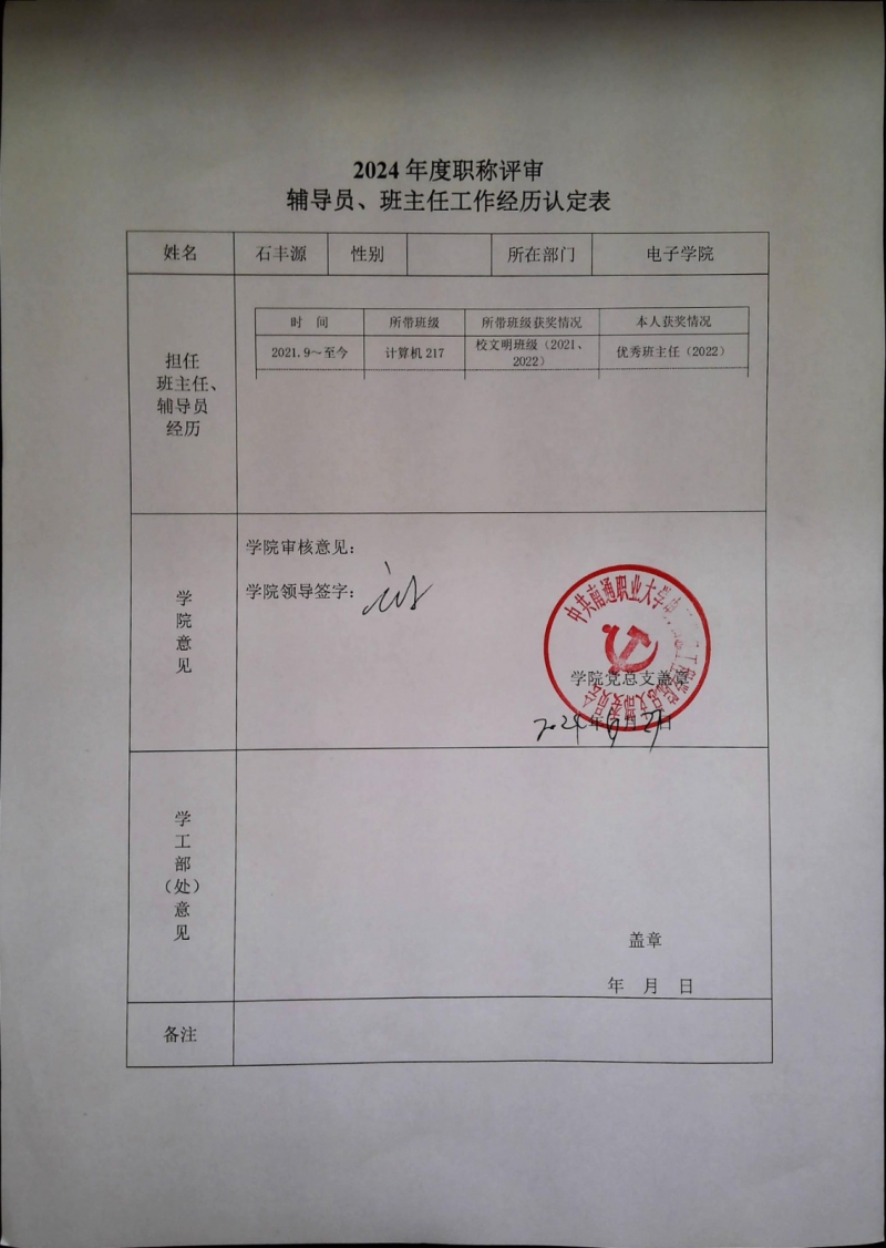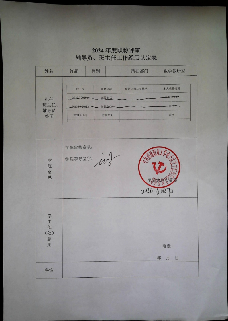 根据suncitygroup太阳集团职称评审材料相关要求,现对相关老师在公司担任班主任、兼职辅导员等工作情况进行认定,并予以公示,公示期从2024年6月27日——2024年7月3日,相关认定情况如下,公示期间有异议的可以书面形式向提出异议,提出异议需要以实名提出,不能用匿名,并写出具体的,真实的情况。