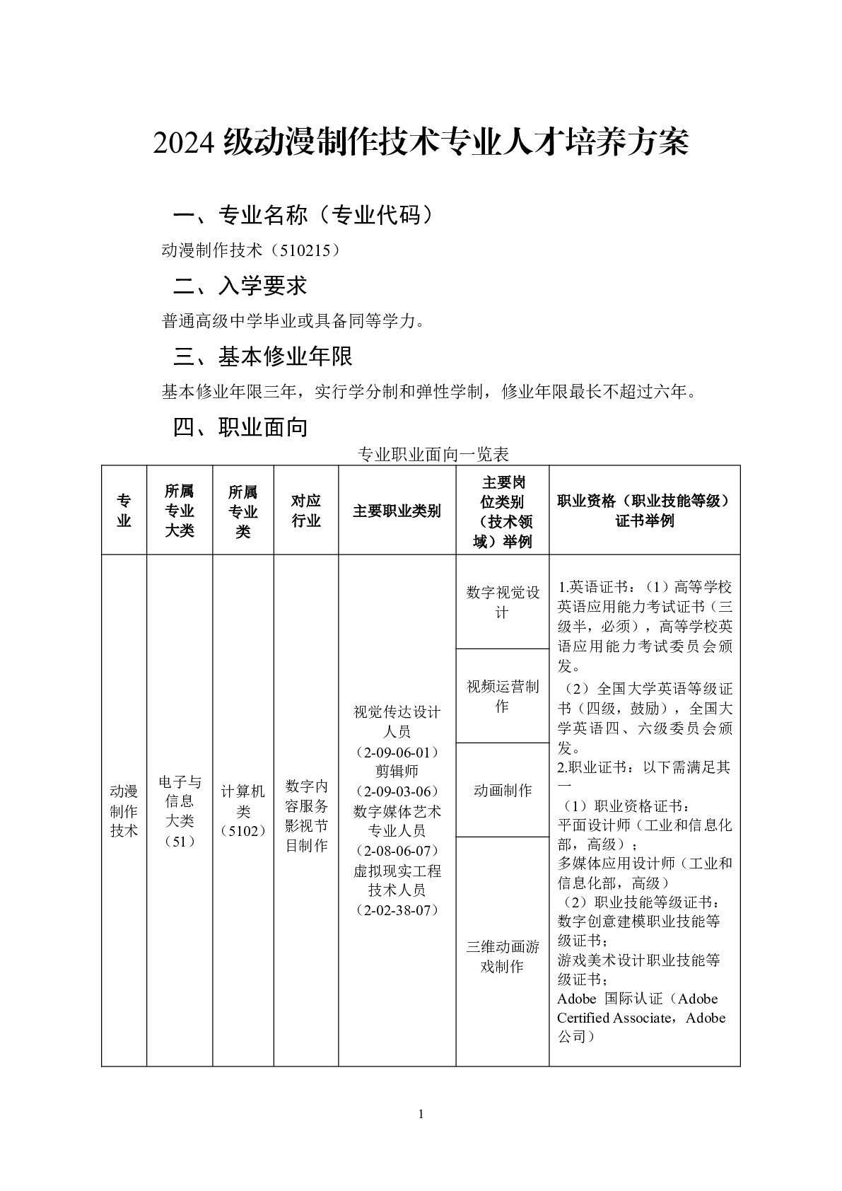 2024级动漫制作技术专业才培养方案(职教一)
