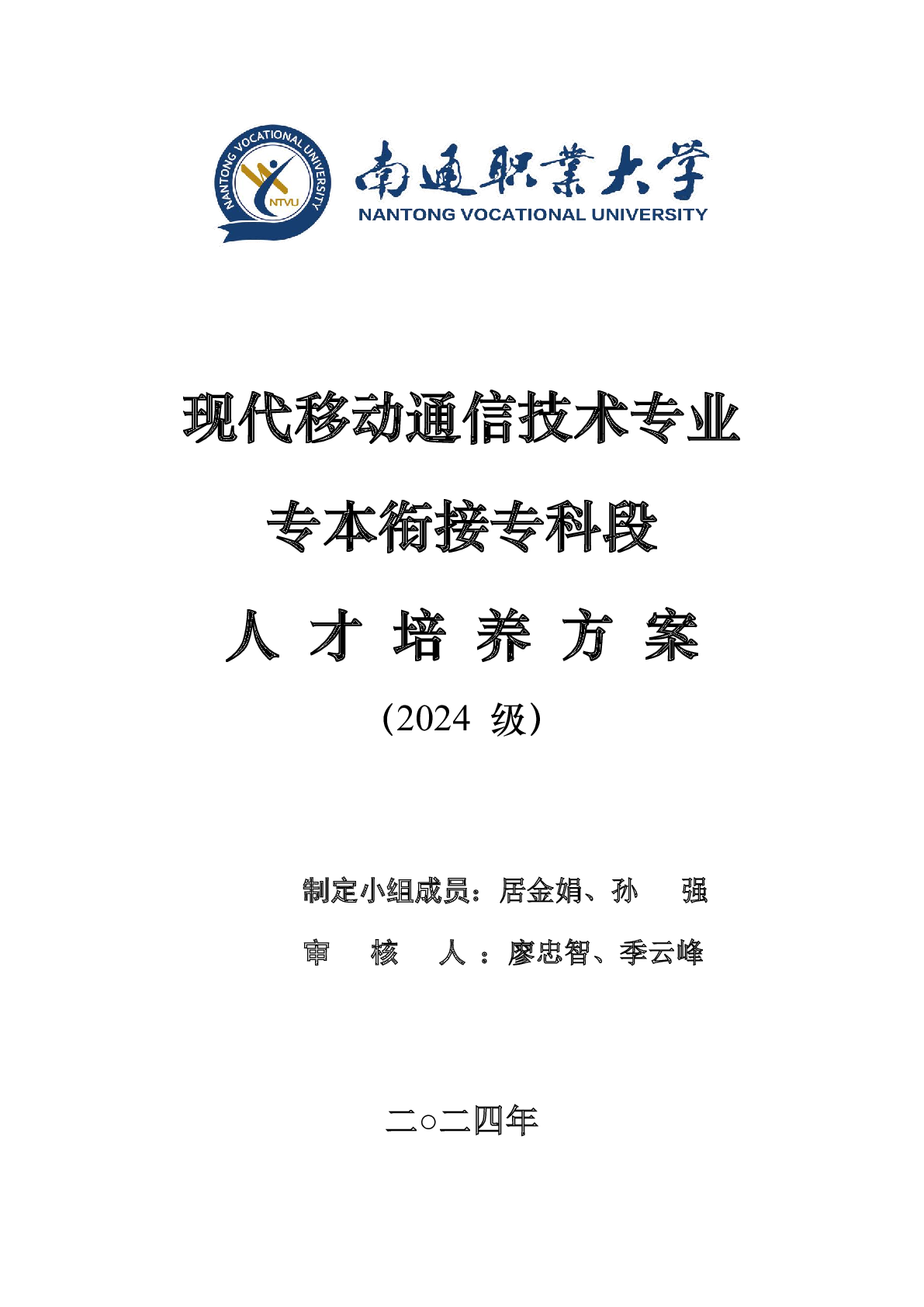2024级现代移动通信技术专业人才培养方案(专本衔接专科段)