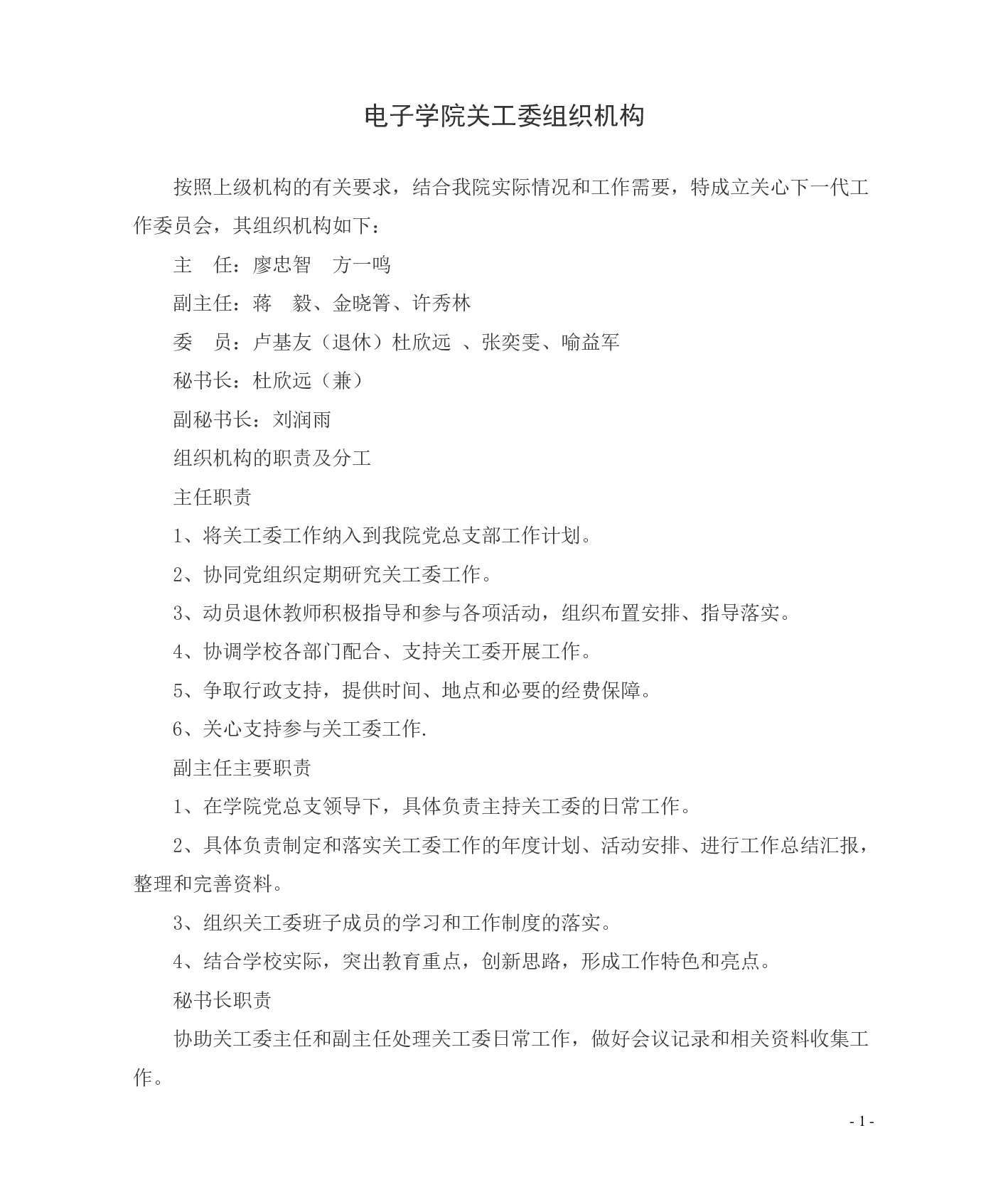 电子公司关工委组织机构