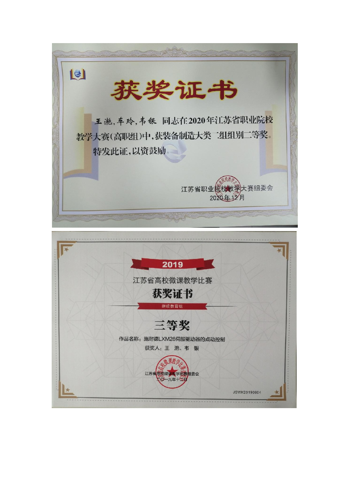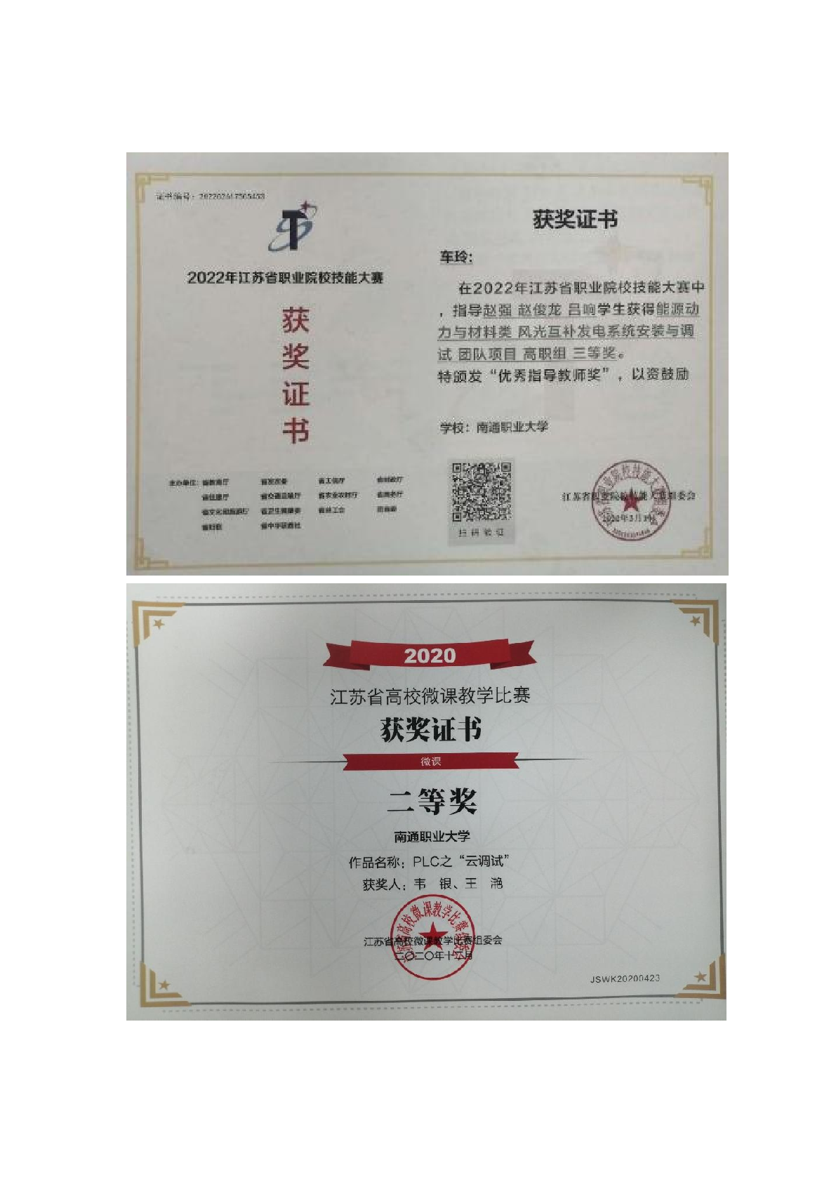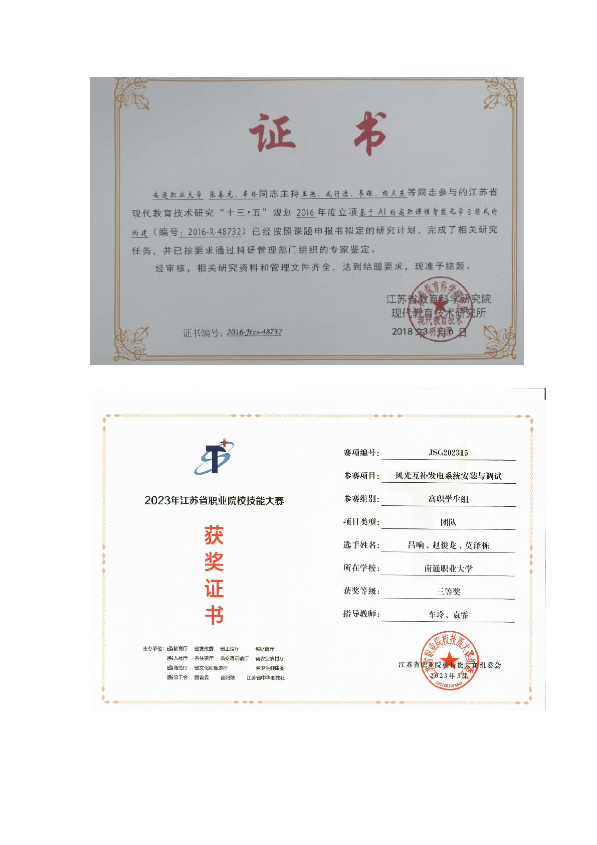 部分证书展示