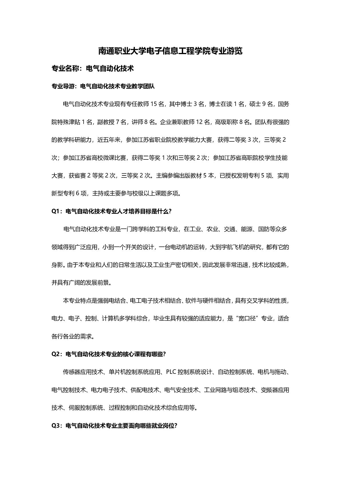 电气自动化技术专业