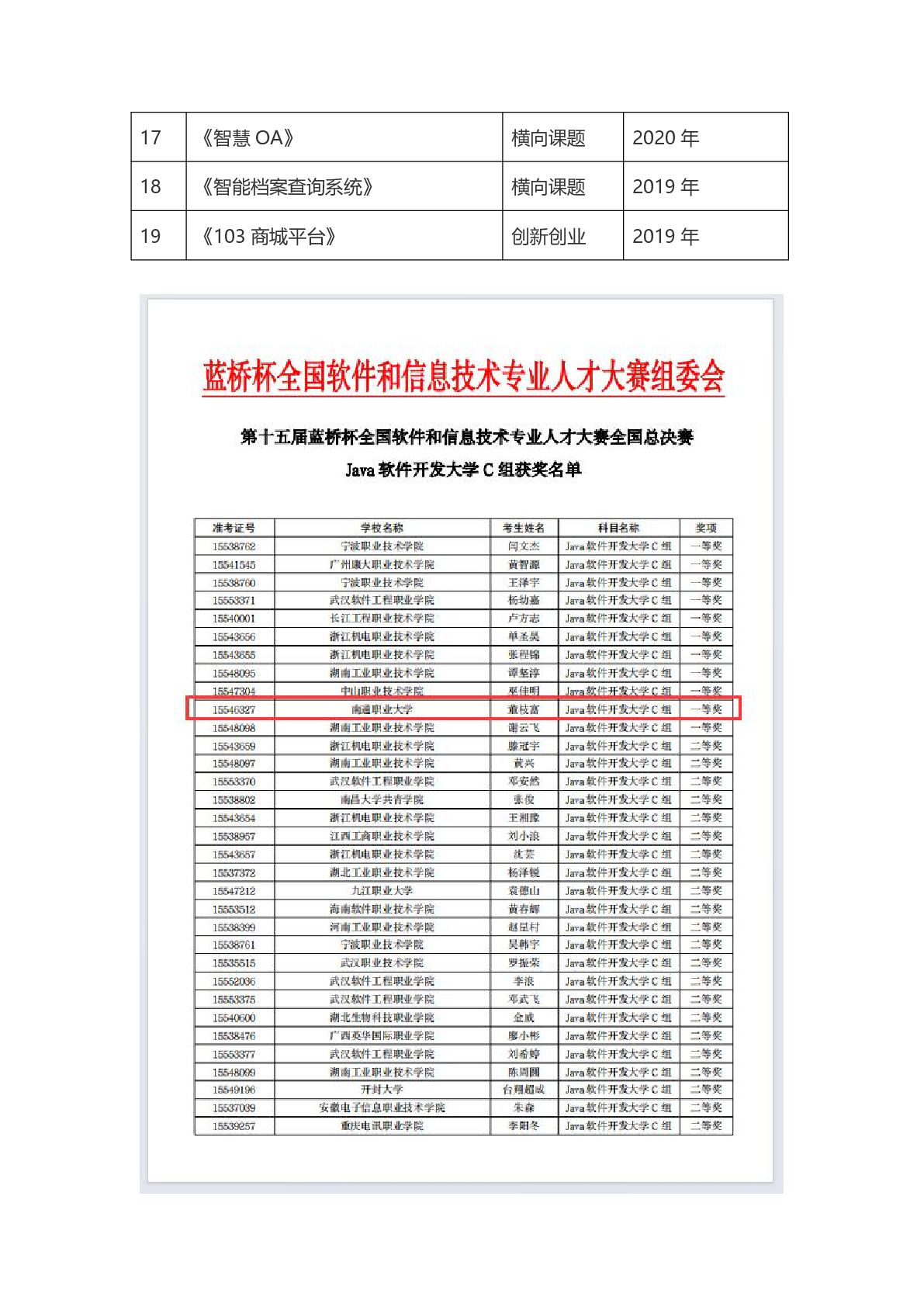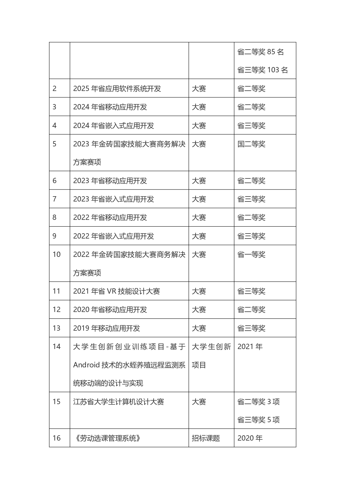 获奖情况列表
